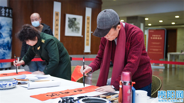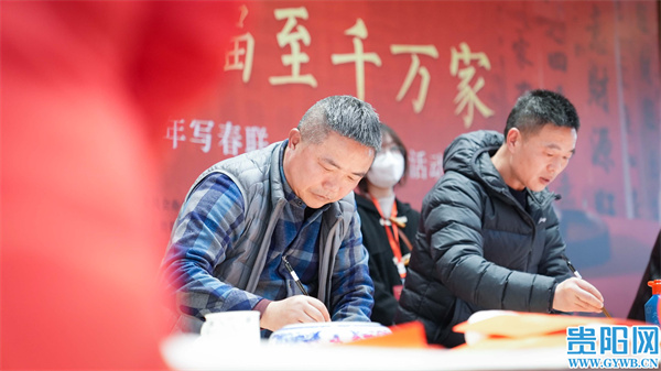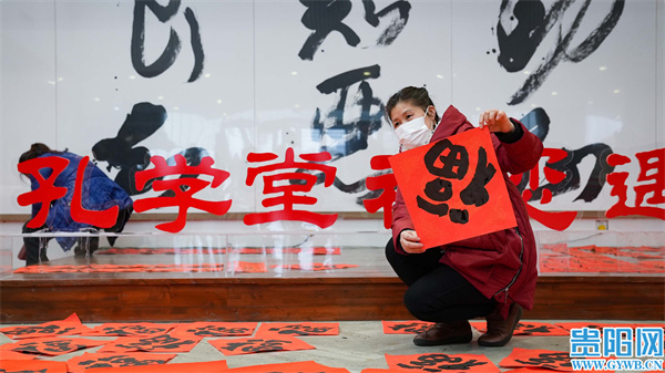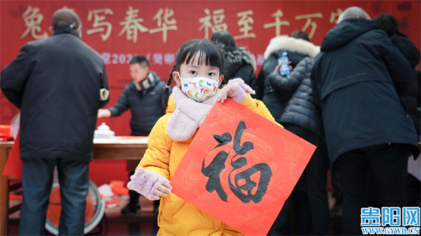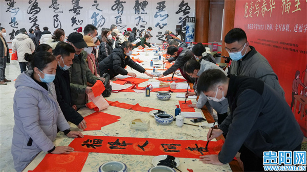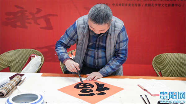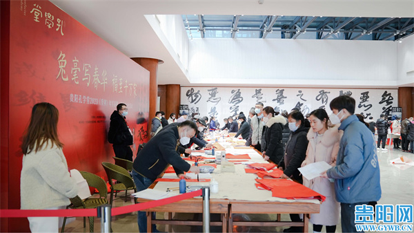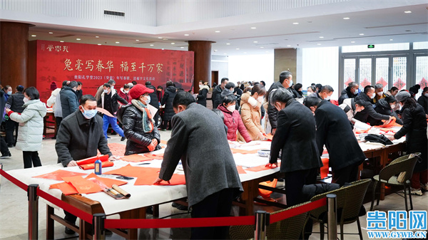 贵阳网·甲秀新闻讯 千门万户曈曈日,总把新桃换旧符。在癸卯兔年来临之际,孔学堂春节文化活动如约而至!1月16日,孔学堂邀请贵州省书协的书法家们现场泼墨挥毫,写春联、送“福”字,以“翰墨迎春”的形式,把一幅幅饱蘸浓墨的新春祝福送给现场的市民朋友们。让优秀传统文化深度融入百姓生活。