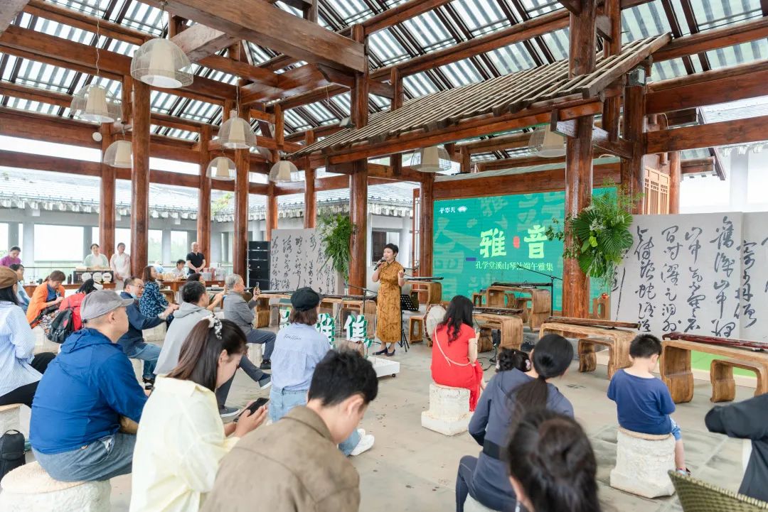 在孔学堂亲民厅,由孔学堂溪山琴社以古琴、弦歌带来的《流水》《酒狂》《鹿鸣》等9首名曲,用赏析形式为市民游客奉上一场特殊的端午古琴户外体验课,现场座无虚席,还有不少慕名而来的游客。