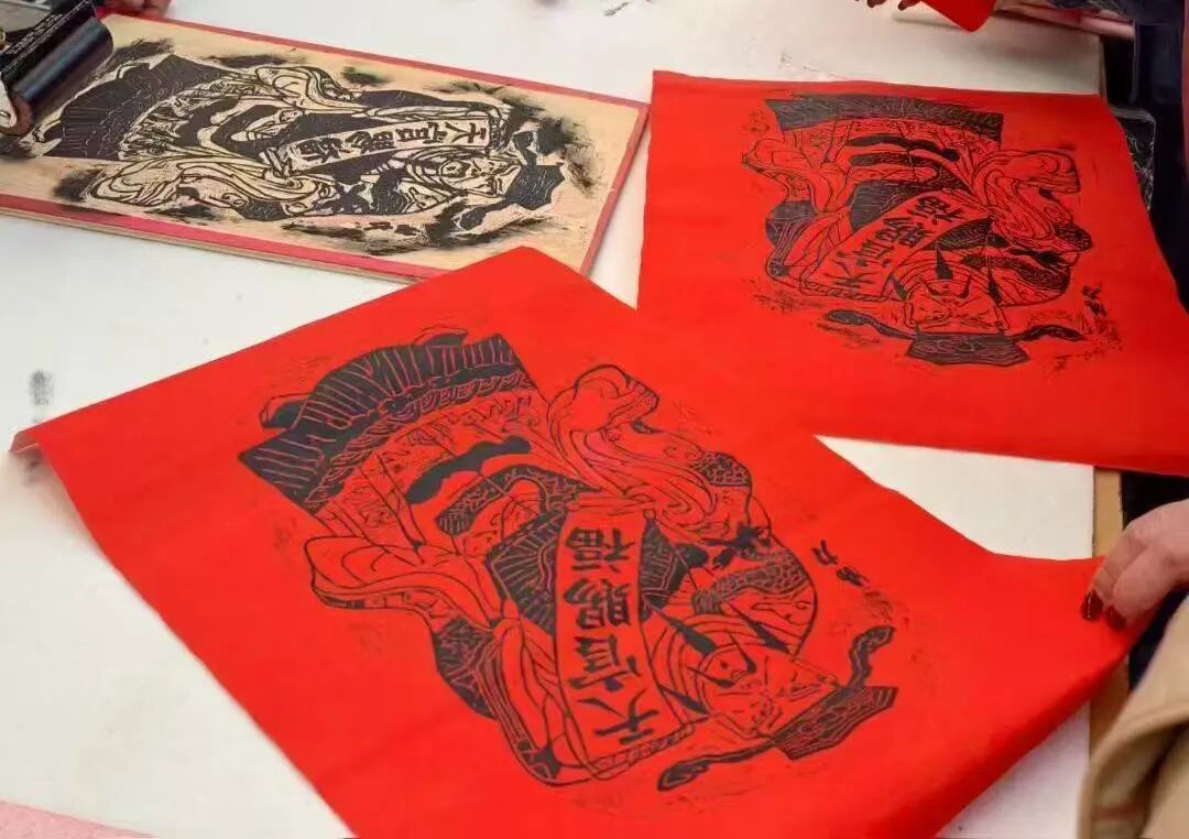 非遗体验一:木版拓印年画(传统门神、福马图样)