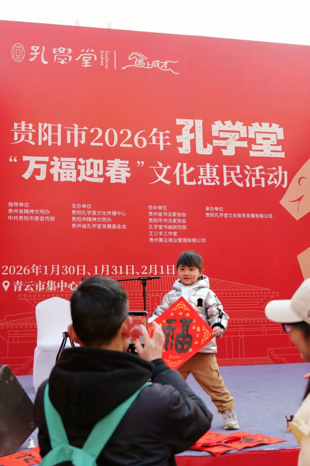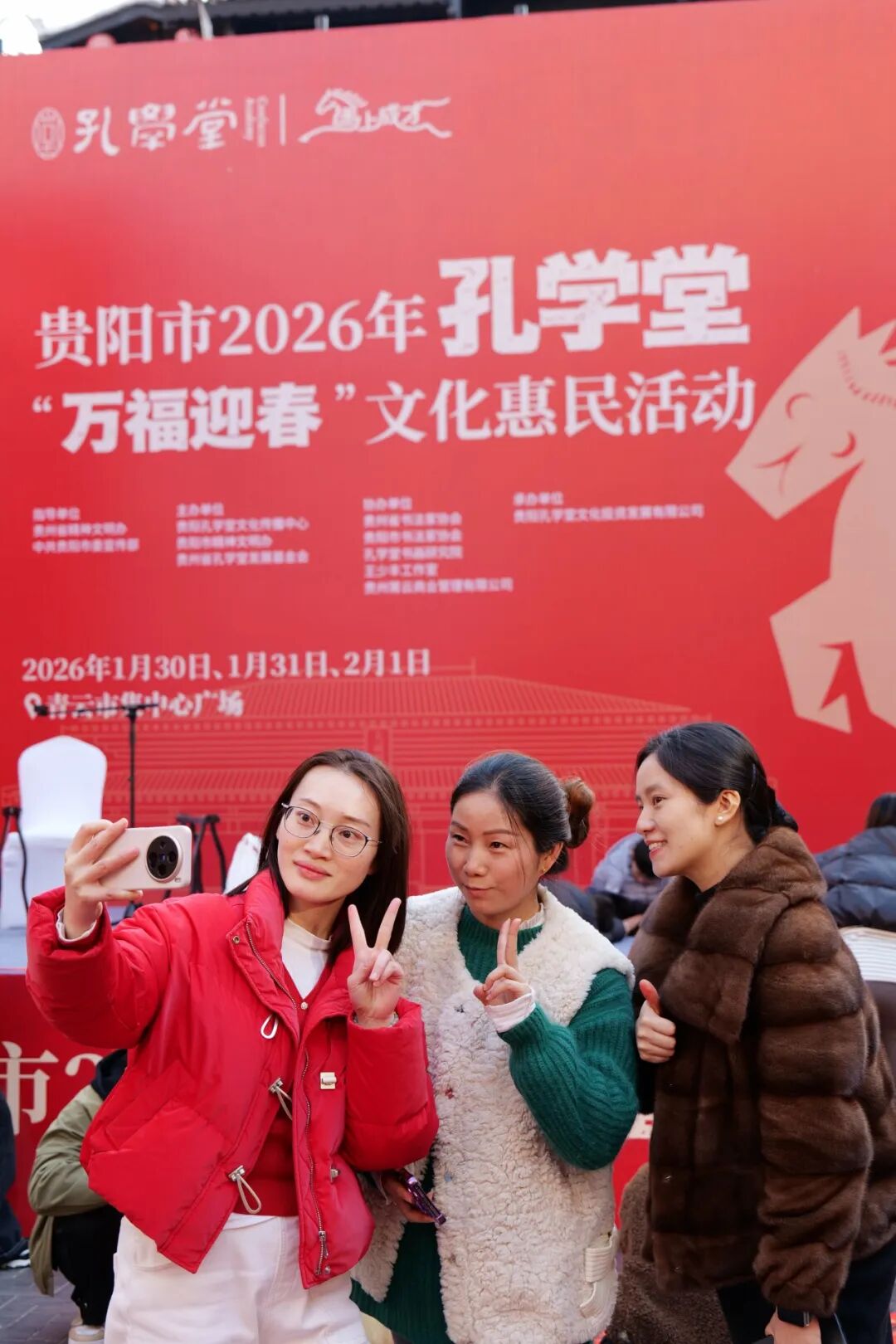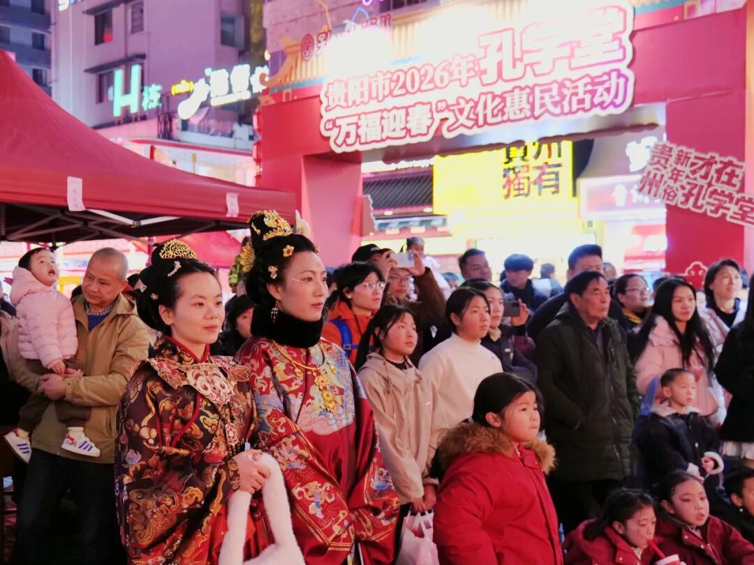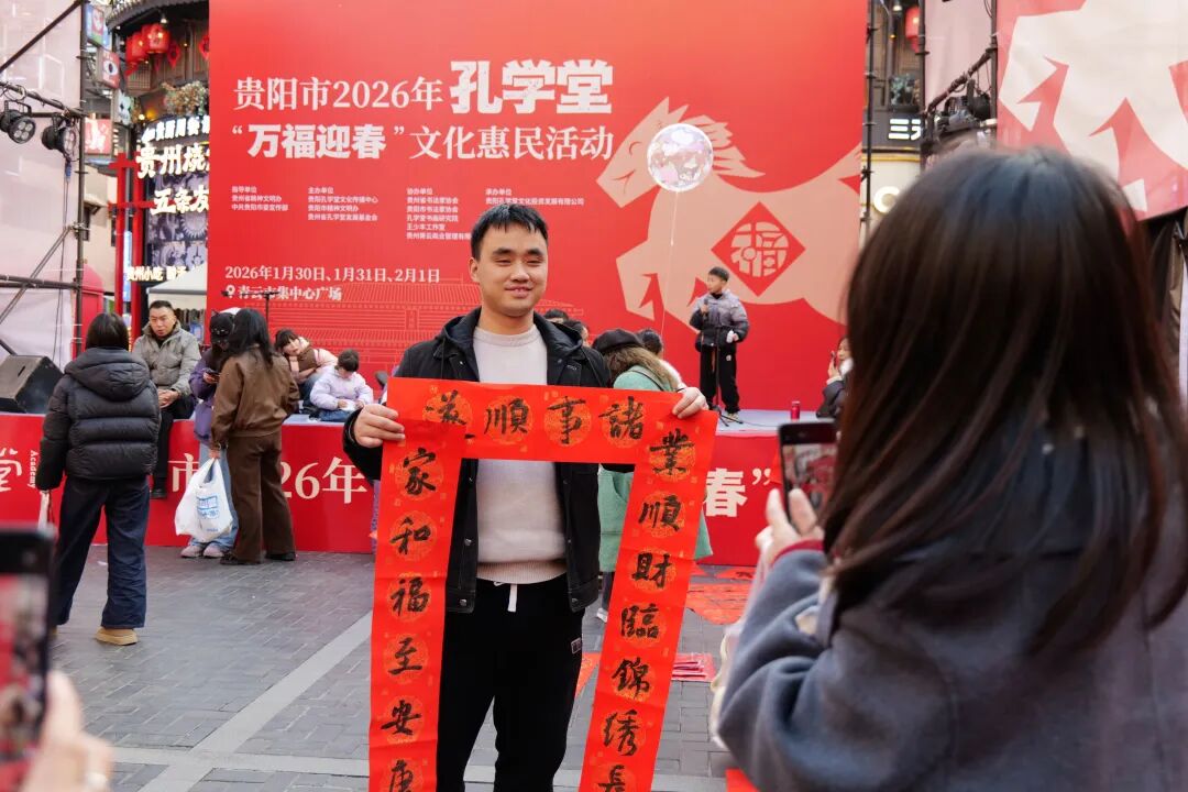香未散,笙歌再续。1月31日,贵阳市2026年孔学堂“万福迎春”文化惠民活动迎来“纳福日”。恰逢周六,微晴的天气为新春平添暖意,青云市集中心广场延续了首日的火爆,并在深度体验中迸发出更热烈的文化活力。