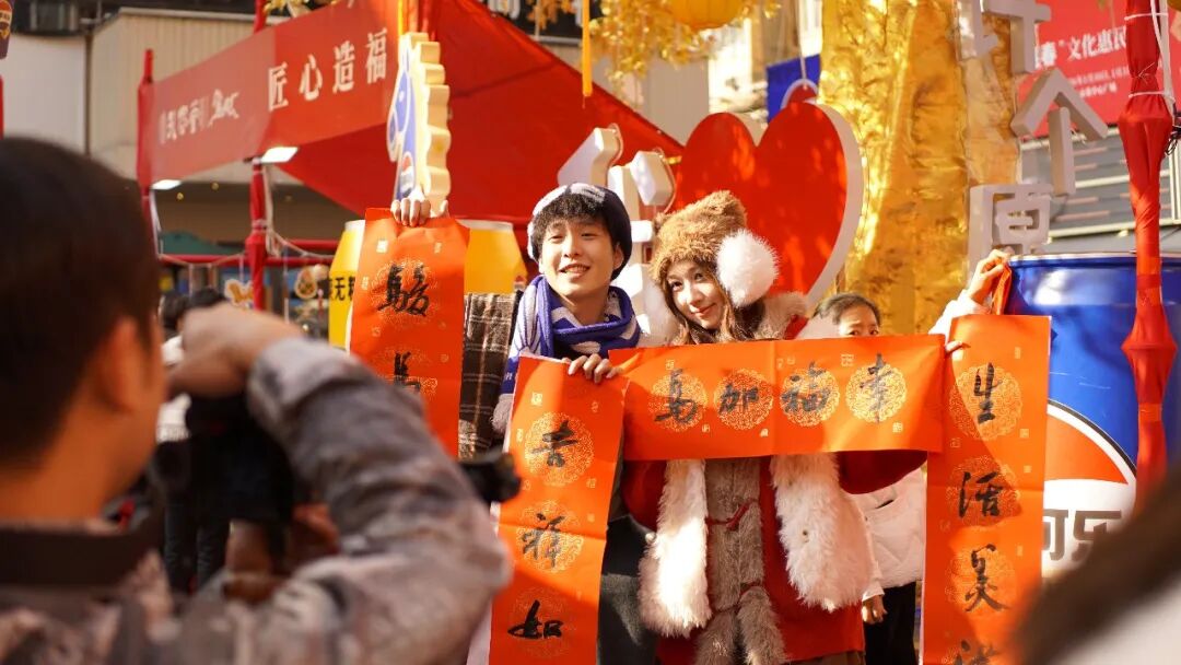 活动核心区域——“万家接福”手写春联热度不减。十六位书法老师被热情的市民层层环绕,他们把一句句吉祥寄语化作一幅幅红火对联,一个个饱满“福”字。据统计,现场已为市民游客送出逾2000幅春联与福字。手写的温度,翰墨的清香,承载着最传统、最深切的新春祝福,传递到千家万户。