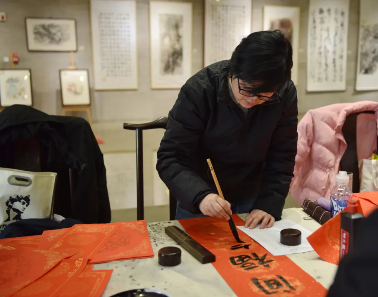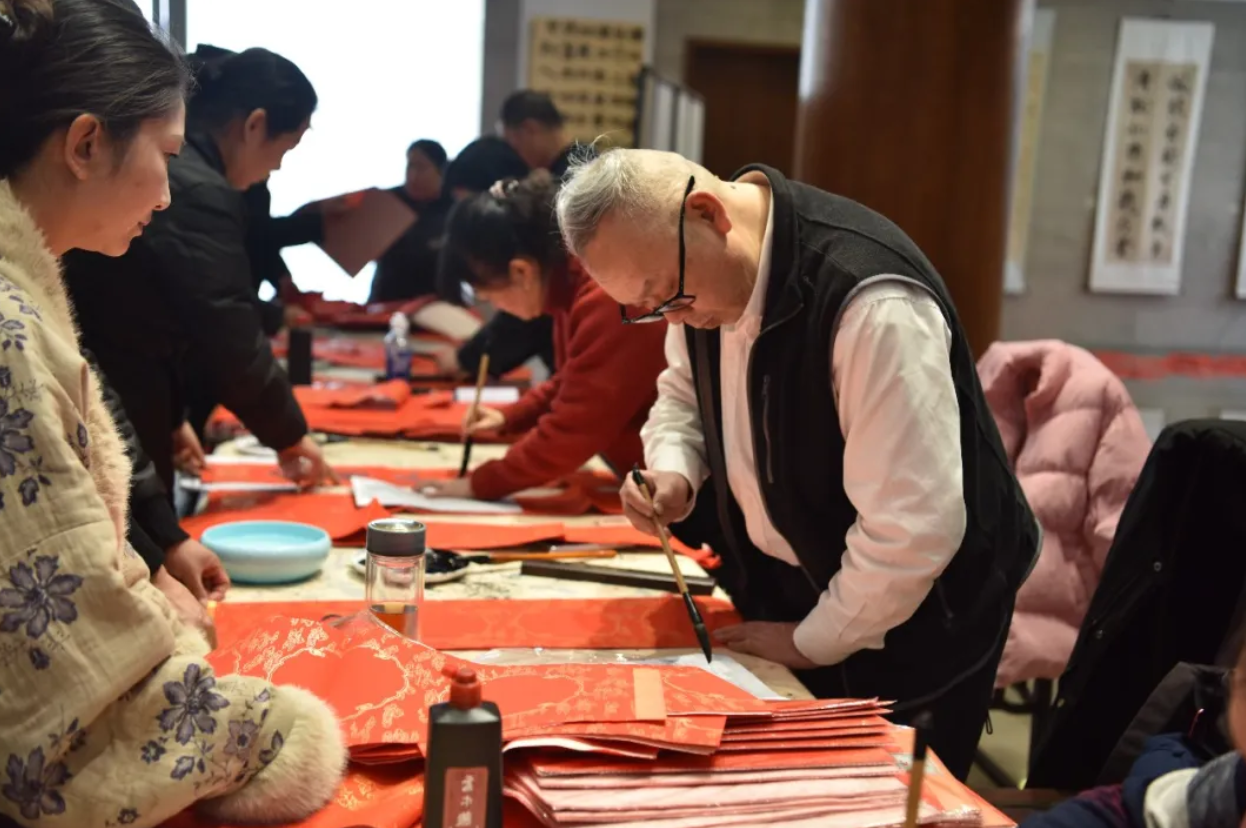 市民张晓平是孔学堂的“老粉丝”,听了十多年公益讲座,却是第一次来参加写春联活动。“现场氛围特别好!”他兴奋地说,“老师写的对联,很有‘墨水味’,和外面买的感觉完全不一样。这种传统的写法好,还能和书法老师交流,特别有意义。”带着孩子前来体验的王桂香女士感触更深,她说:“写春联是我们的老习俗,带孩子来亲身感受一下传统节日的氛围,本身就是一个非常好的教育活动。”
