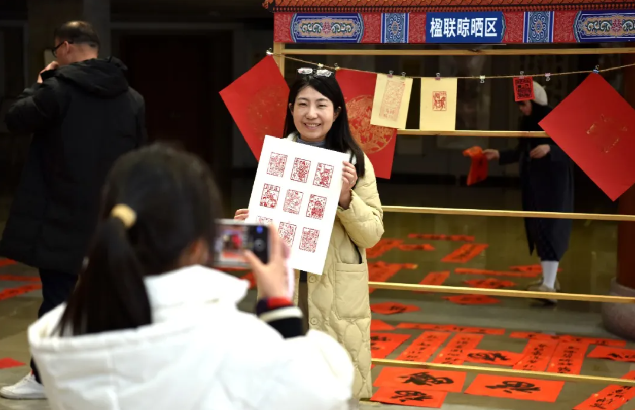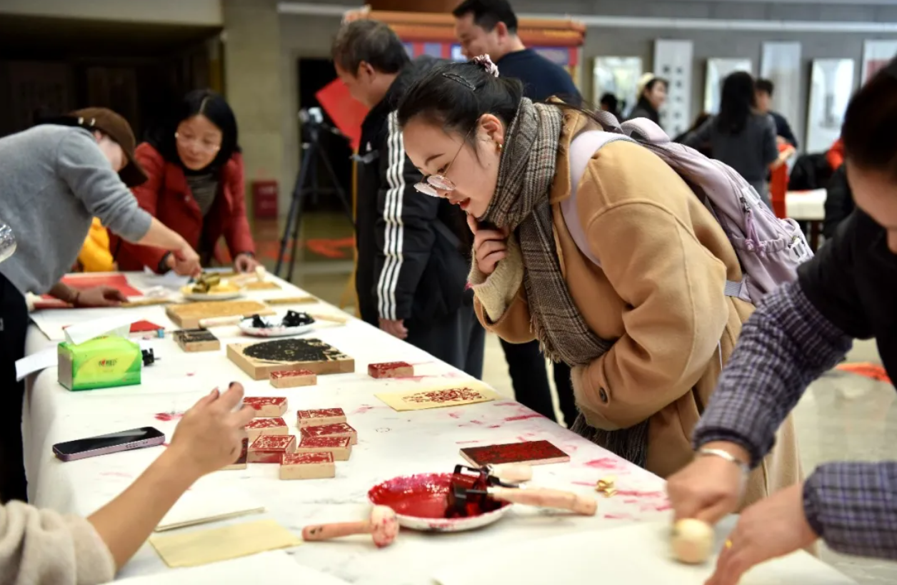 除了写春联,现场的年画体验专区同样备受追捧。市民们亲手将油墨均匀滚在传统木刻印版上,覆上红纸,细心拓印。随着纸张揭开,一幅幅寓意吉祥的“福神”“寿神”“年年有余”年画便在手中诞生。欢声笑语中,人们带着自己亲手制作的年画和满满的收获,满意而归。
