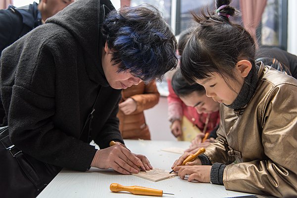 “终于有一副自己的版画,带回家裱起来。”市民贾刚兴奋地向同伴展示刚刚印出的渔翁图。在展览的“版画”体验区,来自贵州民族大学的版画老师们为观众现场指导版画制作。“感觉艺术家的画不再高高在上,自己也可以亲自制作、亲自体验,非常有成就感。”